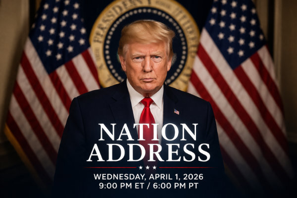 Palm Springs — A nationally televised address by President Trump is set for Wednesday, April 1, 2026, at 9:00 PM Eastern Time (6:00 PM Pacific Time), placing it squarely in the early evening hours for viewers across California and the Coachella Valley.